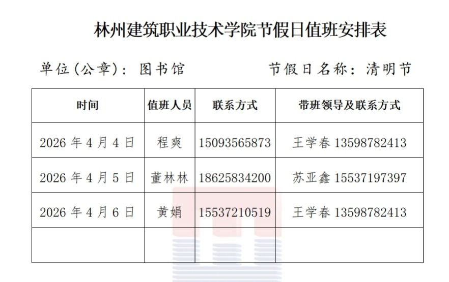 图书馆清明节值班安排