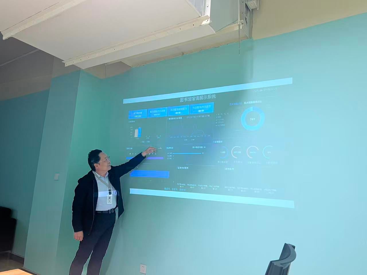 随后,馆长王学春借助多媒体设备,向馆员们详细讲解并展示了其他高校先进的智慧图书馆展示系统页面。该页面功能强大、数据丰富,直观呈现了图书馆藏书总量、累计到馆人数、今日到馆人数等基础数据,还包含了本月借还书、今日借还书等动态信息。此外,好书推荐、最受欢迎的图书榜单等特色板块,为读者提供了精准的阅读指引。通过展示,馆员们对智慧图书馆的便捷性与高效性有了更直观的感受,也为本馆智慧化建设提供了宝贵的借鉴经验。