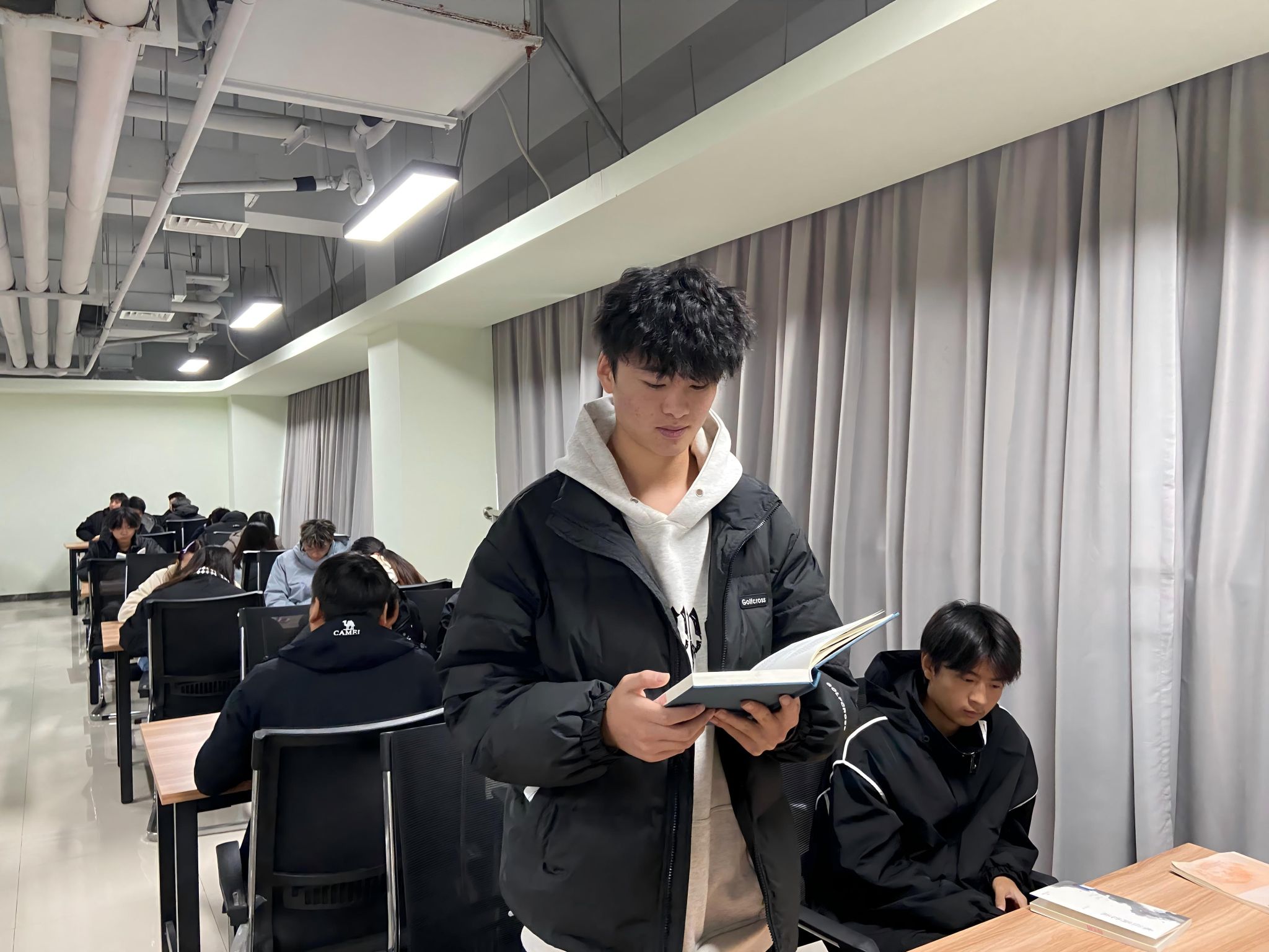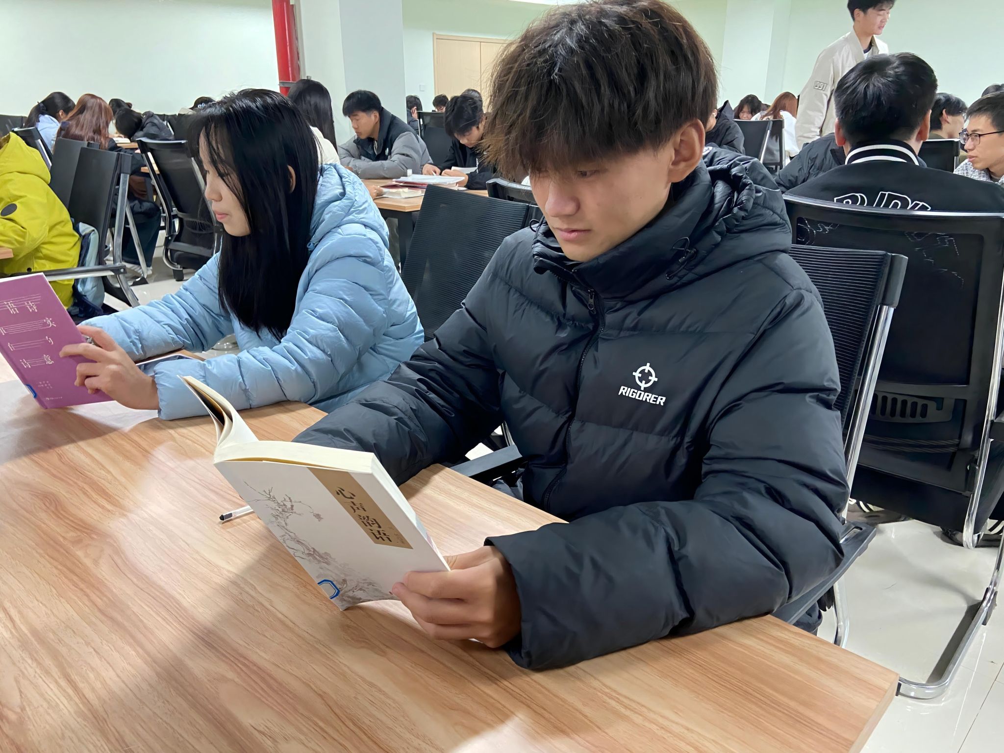 在阅读分享环节,特别设置了“自由发言+经典诵读”双环节。同学们踊跃举手,结合所选诗集畅谈感悟:有人从《面朝大海,春暖花开》中读出对生活的热爱,有人借《黑夜给了我黑色的眼睛》诠释逆境中的坚守。更有多位同学现场朗诵诗中名句,“我如果爱你——绝不像攀援的凌霄花……”声情并茂的演绎将诗歌的张力展现得淋漓尽致,引发全场共鸣。聆听者或凝神思考,或轻声交流,在观点的碰撞中深化对诗歌的理解,真正实现了“以书会友,以诗共情”的活动初衷。